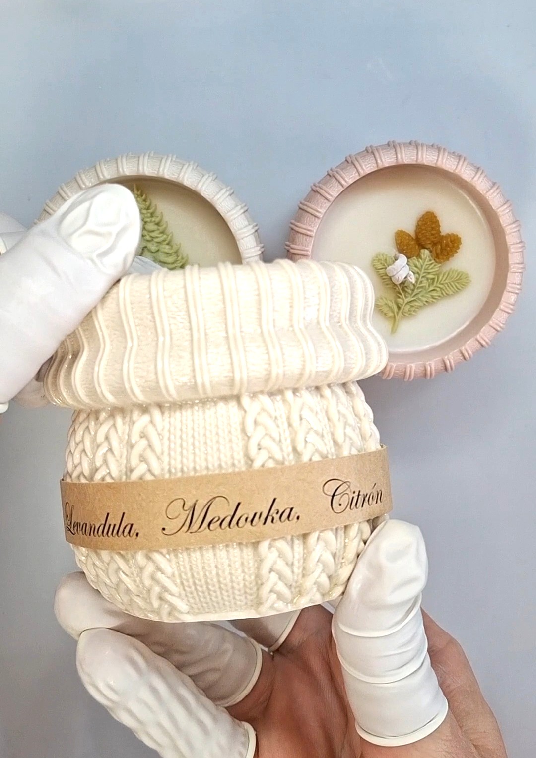 Ručne odlievaný svietnik so zimnou atmosférou, ktorý pripomína mäkký pletený sveter.